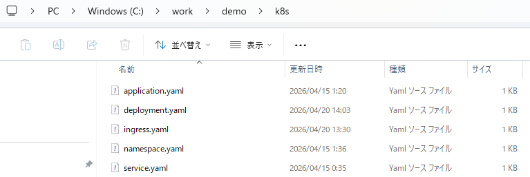 ArgoCD用のnamespace作成し、外部yamlから構築を実施。