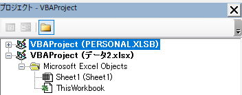 Alt+F11を押下して、Visual Basicの画面を開くと、PERSONAL.XLSBが表示されるようになる。