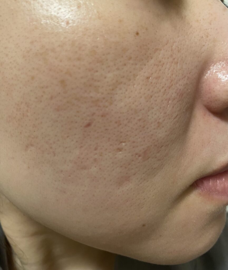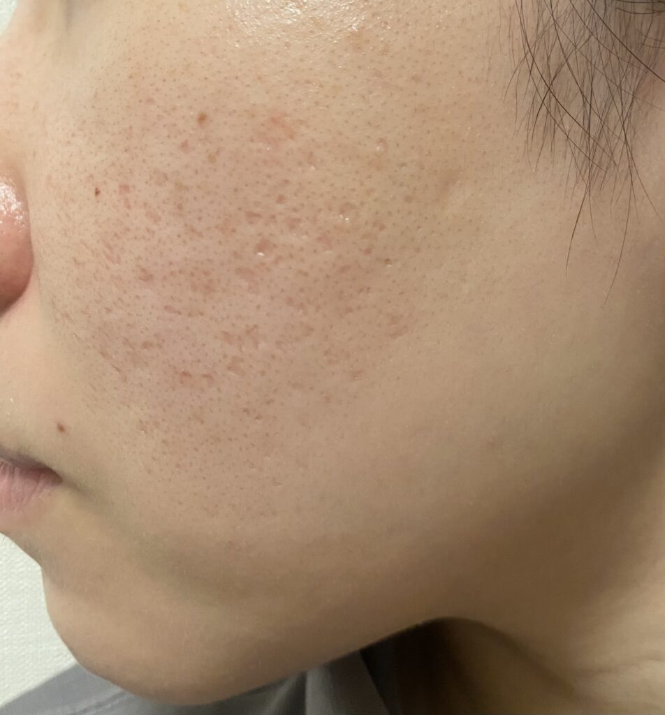 ダウンタイムがおさまりました。果たして効果は?と聞かれると、まだ実感できていないです。毎日鏡とにらめっこして過ごしていますが、気になっている深めのクレーターじはほぼ変化なしと言っても過言ではありません。