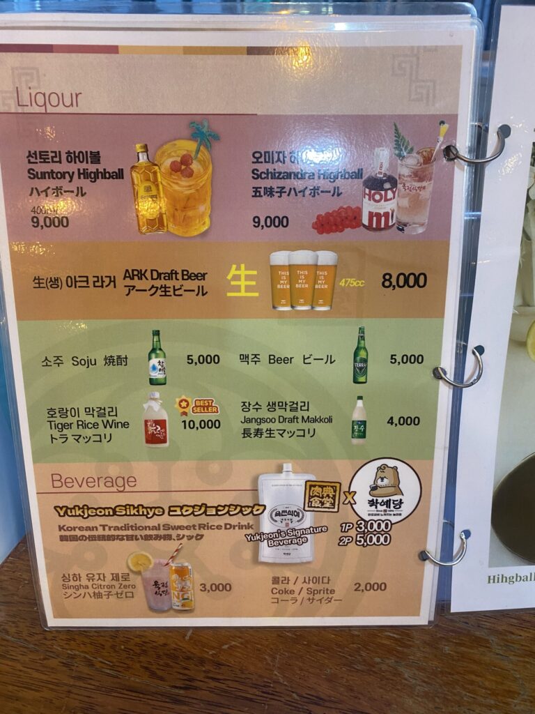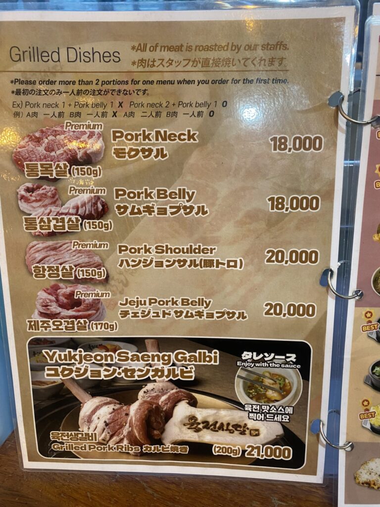 ちなみに サムギョプサル 1人前+ モクサル 1人前での注文はできないか聞いてみましたが、それはできないとのことでした。