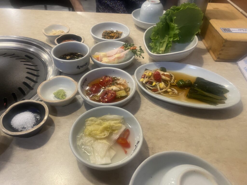席に着くと、お肉と一緒に食べるセットが用意されています。