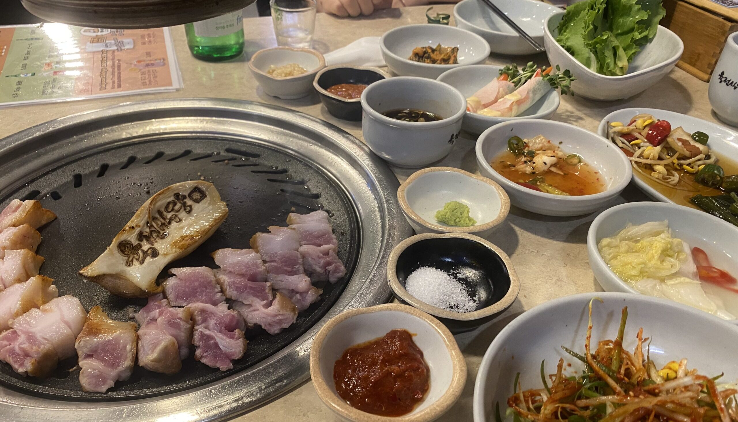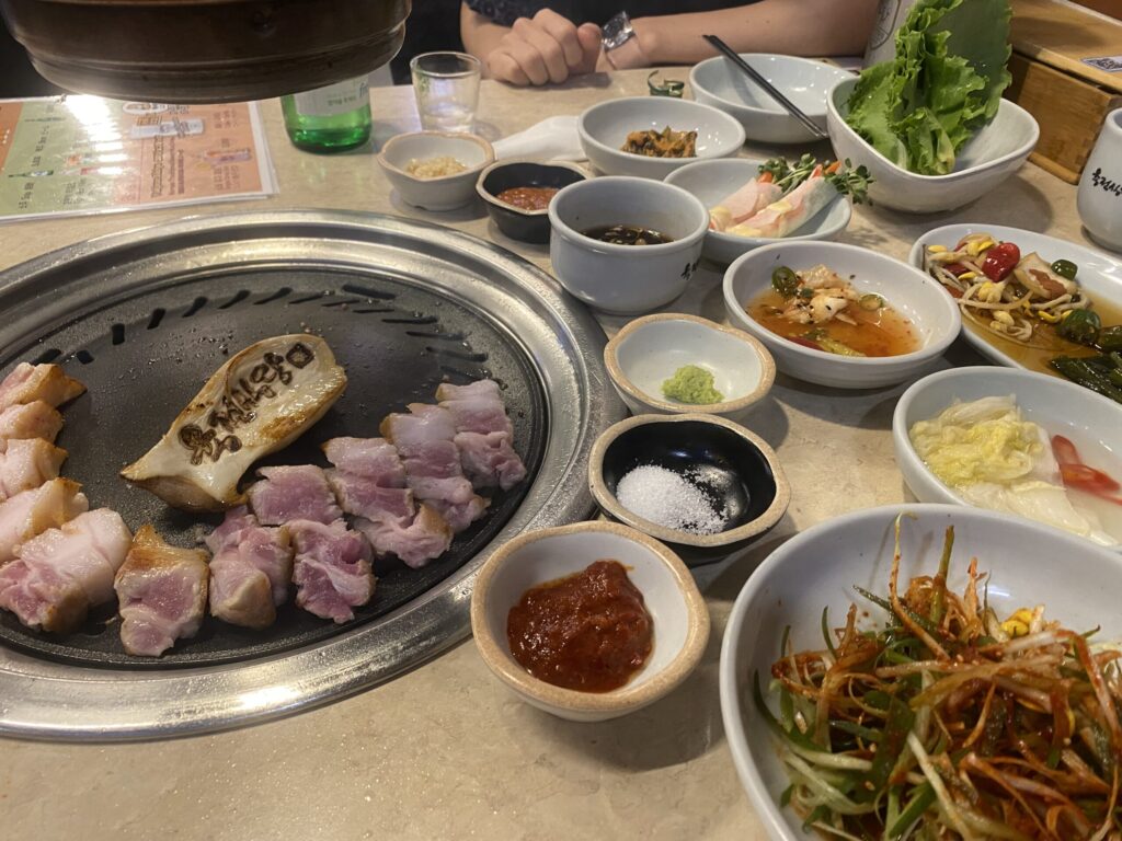 サムギョプサルとモクサル、どっちにするか悩みに悩みましたが、韓国で一発目のごはんだったので、やっぱりサムギョプサルでしょ!ということでサムギョプサルにしました。個人的には脂身が得意ではないのでモクサルも食べてみたかったです。