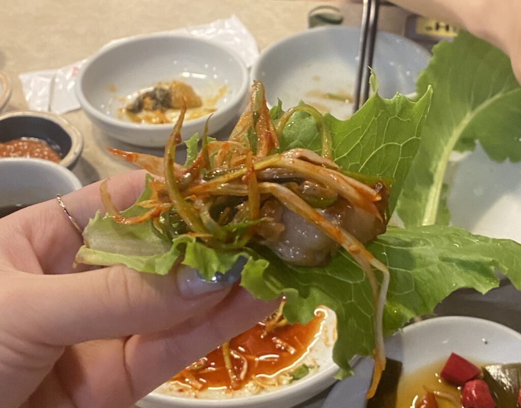 手前の旨辛ネギと食べたり、もちろんサンチュと食べたり。おしゃべりする暇なく、食に集中していました(笑)